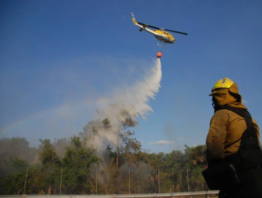 A helicopter works on the same principle but through a different mechanism. Instead of moving a wing through the air, a helicopter spins a rotor with blades. A rotor is like a propeller, but it is horizontal rather than vertical. The spinning of rotor blades, however, also creates torque that can make the helicopter spin in the opposite direction. To solve this problem, on helicopters with one primary rotor, a small, second rotating blade in the tail works against the torque to hold the helicopter straight. Because the helicopter's rotor blades move through the air to create lift (rather than moving the craft itself), a helicopter can lift off and land vertically, fly more slowly than an airplane, and hover. Helicopters can even fly backwards. These versatile characteristics make helicopters ideal for many specialized tasks, including firefighting, law enforcement, and search and rescue operations.